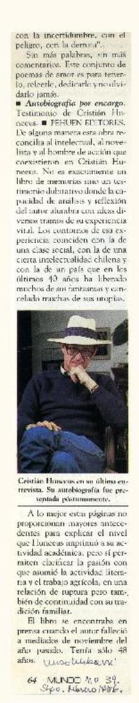 Materias: HUNEEUS, CRISTIAN - AUTOBIOGRAFIA POR ENCARGO