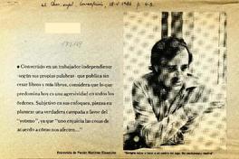 Pablo Huneeus, "Los moderados pasamos de moda" [artículo] / Pacián Martínez Elissetche. El Sur (Diario : Concepción, Chile)-- mayo 18, 1986, p. 4-5 (suplemento) retr. .