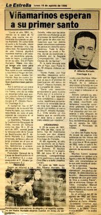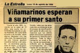 Viñamarinos esperan a su primer santo [artículo]. La Estrella (Valparaíso). -- ago. 18, 1986, p. 3. retr. .