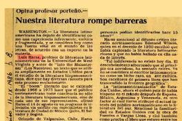 Nuestra literatura rompe barreras [artículo] / Norma Romano Benner. El Mercurio (Valparaíso). -- sept. 11, 1986, p. 8. .