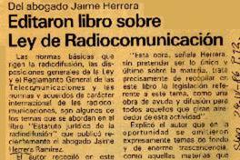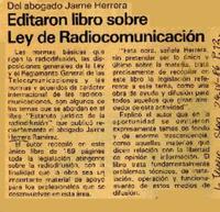 Editaron libro sobre Ley de Radiocomunicacón [artículo]. La Tercera. -- jun. 29, 1986, p. 12 .