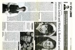 Blanca Lewin será María L. Bombal en serie [artículo] / Leonardo Robles. El Mercurio (Diario : Valparaíso, Chile)-- nov. 26, 1986, p. 2. .