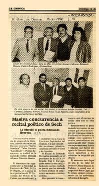 Masiva concurrencia a recital poético de Sech [artículo]. El Día (Diario : La Serena, Chile)-- nov. 19, 1989, p. 14 retr. .