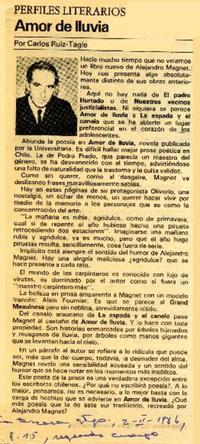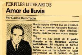 Amor de lluvia [artículo] / Carlos Ruiz-Tagle. La Tercera. -- feb. 2, 1986, p. 15 (segundo cuerpo) retr. .