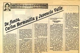 De fiesta, Carlos Hermosilla y Juvencio Valle [artículo] / Mario Ferrero. Fortín Mapocho. -- nov. 4, 1990, p. 6 (suplemento) retr. .