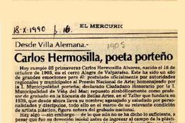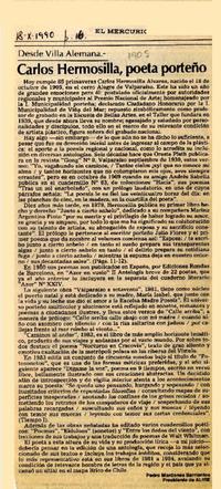 Carlos Hermosilla, poeta porteño [artículo] / Pedro Mardones Barrientos. El Mercurio (Valparaíso). -- oct. 18, 1990, p. 16 .