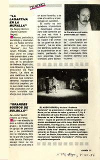 Teatro [artículo]. Carola. -- no. 113 (dic. 8, 1986) p. 91 retr. .