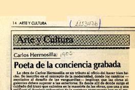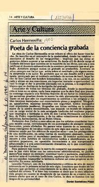Poeta de la conciencia grabada [artículo] Daniel Santelices Plaza.