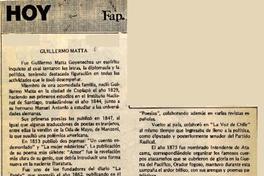 Guillermo Matta [artículo] / Fap. El Día (Diario : La Serena, Chile)-- ene. 27, 1986, p. 2. Atacama. -- ene. 28, 1986, p. 3. .