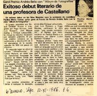 Exitoso debut literario de una profesora de castellano [artículo]. La Tercera. -- nov. 12, 1986, p. 6. retr. .