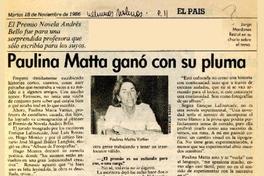 Paulina Matta ganó con su pluma [artículo]. Las Últimas Noticias (Diario : Santiago, Chile)-- nov. 18, 1986, p. 11 retr. .