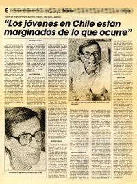 "Los jóvenes en Chile están marginados de lo que ocurre" [artículo] / Gilberto Wilton R. La Tercera. -- nov. 25, 1990, p. 6 (segundo cuerpo) retr. .
