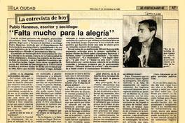 "Falta mucho para la alegría" [artículo] / Guillermo Chávez. El Diario Austral (Temuco). -- nov. 21, 1990, p. A7 retr. .