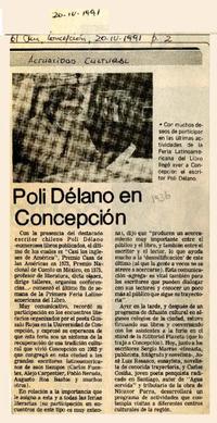 Poli Délano en Concepción [artículo]. El Sur (Diario : Concepción, Chile)-- abr. 20, 1991, p. 2. .