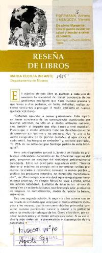 Reseña de libros [artículo] / María Cecilia Infante. Museos. -- no. 10 (ago. 1991) p. 22 .