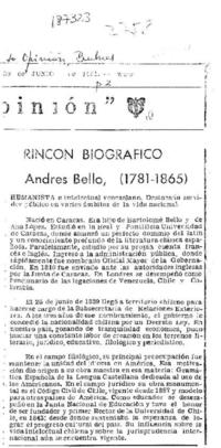 Andrés Bello (1781-1865) [artículo]. La Opinión. -- jun. 30, 1991, p. 2. .