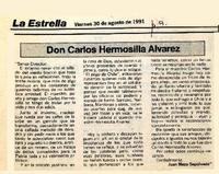 Don Carlos Hermosilla Alvarez [artículo] / Juan Meza Sepúlveda. La Estrella. -- ago. 30, 1991, p. 9. .