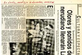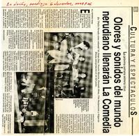 Olores y sonidos del mundo nerudiano llenarán La Comedia [artículo] / Willy Nikiforos. La Nación (Diario : Santiago, Chile)-- nov. 6, 1991, p. 36. .