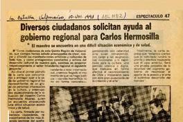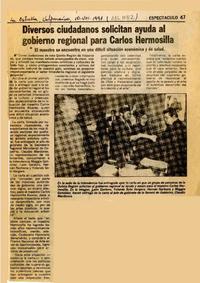 Diversos ciudadanos solicitan ayuda al gobierno regional para Carlos Hermosilla [artículo]. La Estrella. -- ago. 10, 1991, p. 47 .