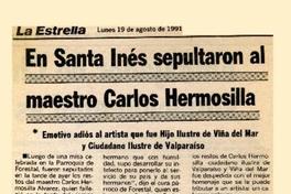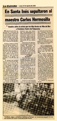 En Santa Inés sepultaron al maestro Carlos Hermosilla [artículo]. La Estrella. -- ago. 19, 1991, p. 13 .