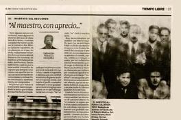 "Al maestro con aprecio --" [artículo] / Galvarino Peralta Herrera. El Día (Diario : La Serena, Chile)-- sepago. 16, 2009, p. 37. .
