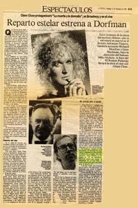 Reparto estelar estrena a Dorfman [artículo]. La Epoca. -- dic. 22, 1991, p. 33 .