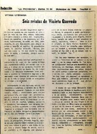 Seis relatos de Violeta Quevedo [artículo] / Apir. La Provincia.-- dic. 16, 1986, p. 2. .