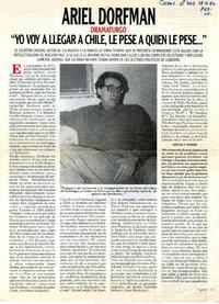 "Yo voy a llegar a Chile, le pese a quien le pese --" [artículo] / Karen Poniachik. Cosas. -- no. 407 (abr. 28, 1992) p. 113-115 retr. .