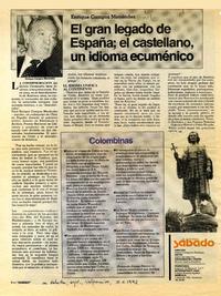 El Gran legado de España, el castellano, un idioma ecuménico [artículo]. La Estrella. -- oct. 10, 1992, p. 2 (suplemento) retr. .