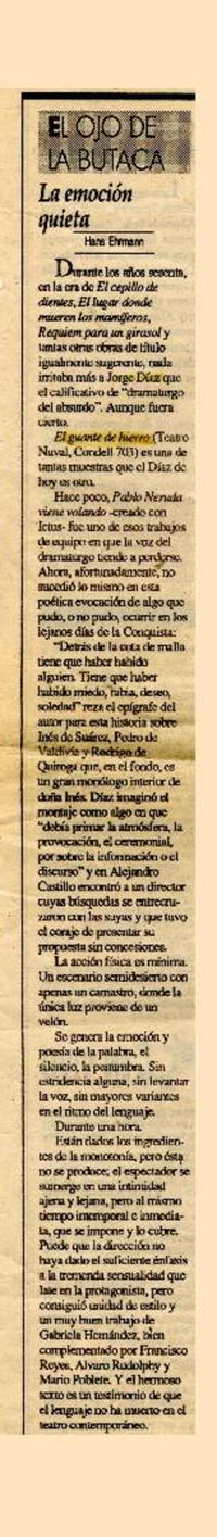 La emoción quieta [artículo] / Hans Ehrmann. La Nación. -- oct. 17, 1992, p. 29 .