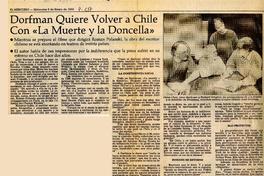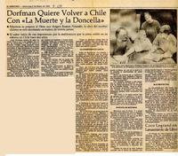 Dorfman quiere volver a Chile con "La muerte y la doncella" [artículo]. El Mercurio (Santiago). -- ene. 6, 1993, p. C17 retr. .