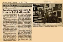 Recordarán primer aniversario de la muerte de Carlos Hermosilla [artículo]. El Mercurio (Valparaíso). -- ago. 13, 1992, p. B6 retr. .