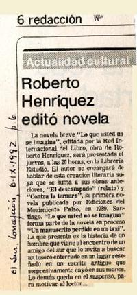 Roberto Henríquez editó novela [artículo]. El Sur (Diario : Concepción, Chile)-- sept. 6, 1992, p. 6. .