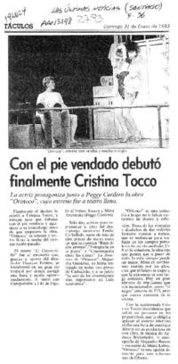 Con el pie vendado debutó finalmente Cristina Tocco [artículo]. Las Últimas Noticias (Diario : Santiago, Chile)-- ene. 31, 1993, p. 36 .