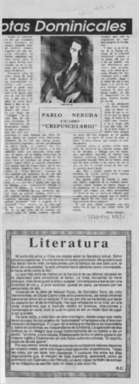 Pablo Neruda y su libro "Crepusculario" [artículo] / Pedro Prado. La Prensa (Diario : Curicó, Chile)-- jun. 14, 1992, p. 2 (suplemento) .