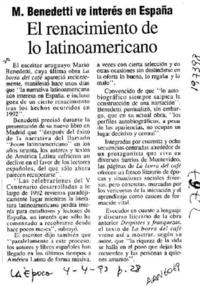 El Renacimiento de lo latinoaméricano [artículo]. La Epoca. -- abr. 4, 1993, p. 28 .