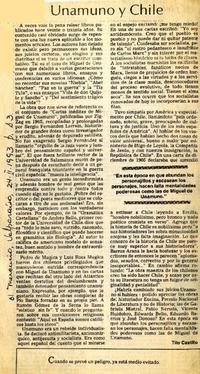 Unamuno y Chile [artículo] / T. C. El Mercurio (Valparaíso). -- feb. 24, 1993, p. A3 La Discusión. -- mar. 3, 1993, p. 3. .