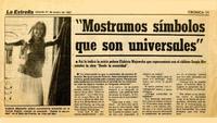 "Mostramos símbolos que son universales" [artículo]. La Estrella. -- ene. 31, 1987, p. 11 .