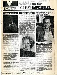 Encuesta, cuál ha sido su gran amor? [artículo]. Vanidades Continental. -- Año 27, no. 3 (ene. 27, 1987) p. 30 retr. .