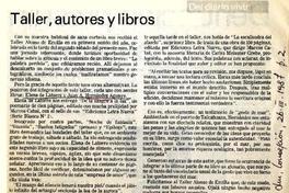 Taller, autores y libros [artículo] / Cronos. El Sur (Diario : Concepción, Chile)-- mar. 26, 1987, p. 2. .