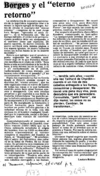Borges y el "eterno retorno" [artículo] / Lautaro Robles. El Mercurio (Valparaíso). -- mayo 27, 1987, p. 9. .