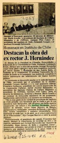 Destacan la obra del ex rector J. Hernández [artículo]. La Tercera. -- abr. 25, 1987, p. 15 retr. .