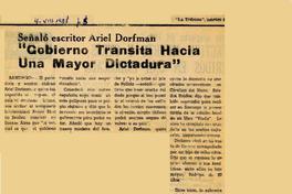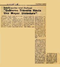 Señaló escritor Ariel Dorfman "Gobierno transita hacia una mayor dictadura" [artículo]. La Tribuna (Los Angeles) -- (ago. 4, 1987), p. 5 .