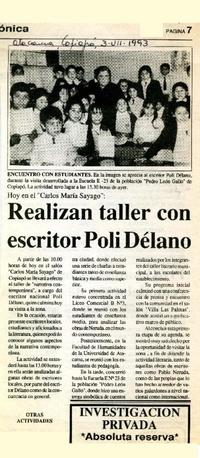 Realizan taller con escritor Poli Délano [artículo]. Atacama . -- jul. 1993, p. 7. retr. .