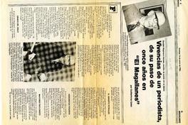 Vivencias de un periodista, de su paso de once años en "El Magallanes" [artículo] / Guillermina Galaz. El Magallanes. -- ene. 12, 1986, p. 2-3 (suplemento) retr. .