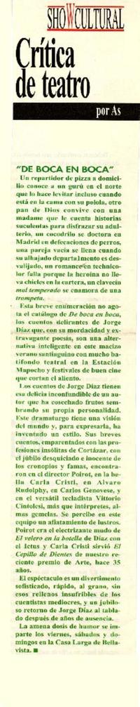 De boca en boca [artículo] / As. Caras. -- no. 150 (ene. 10, 1994) p. 94 .