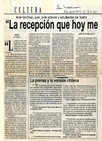 "La recepción que hoy me dan en Chile reflejan un total snobismo" [artículo] A. M. R.