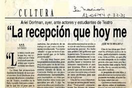 "La recepción que hoy me dan en Chile reflejan un total snobismo" [artículo] / A. M. R. La Nación. -- jun. 12, 1994, p. 32-33 retr. .