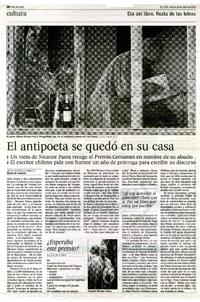 El antipoeta se quedó en su casa [artículo] / Javier Rodríguez Marcos. El País (Diario : España)-- abr. 24, 2012, p. 28. .