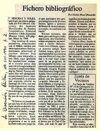 Fichero bibliográfico [artículo] / Carlos René Ibacache. La Discusión. -- ago. 29, 1994, p. 2. .
